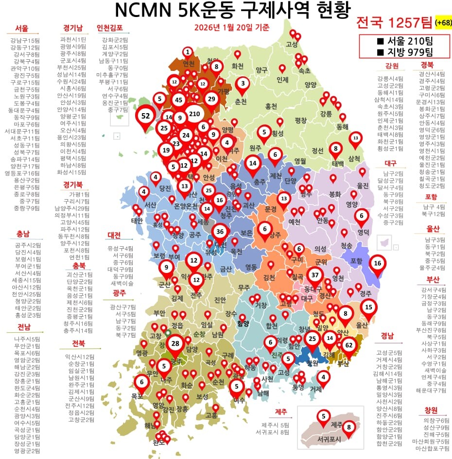 NCMN 5K구제사역은 5K운동본부와 국내 11개 지부